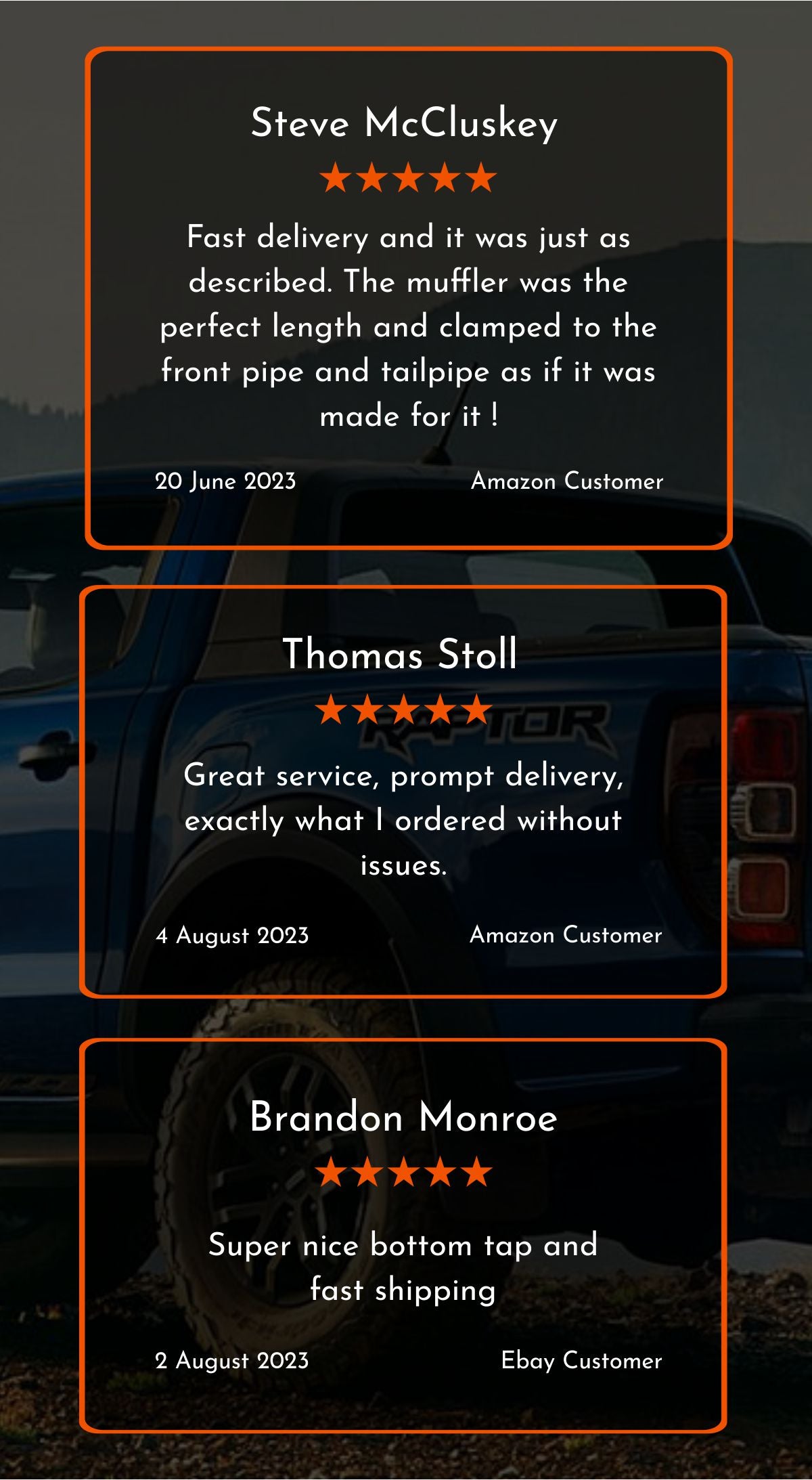 Fast delivery and it was just as described. The muffler was the perfect length and clamped to the front pipe and tailpipe as if it was made for it !