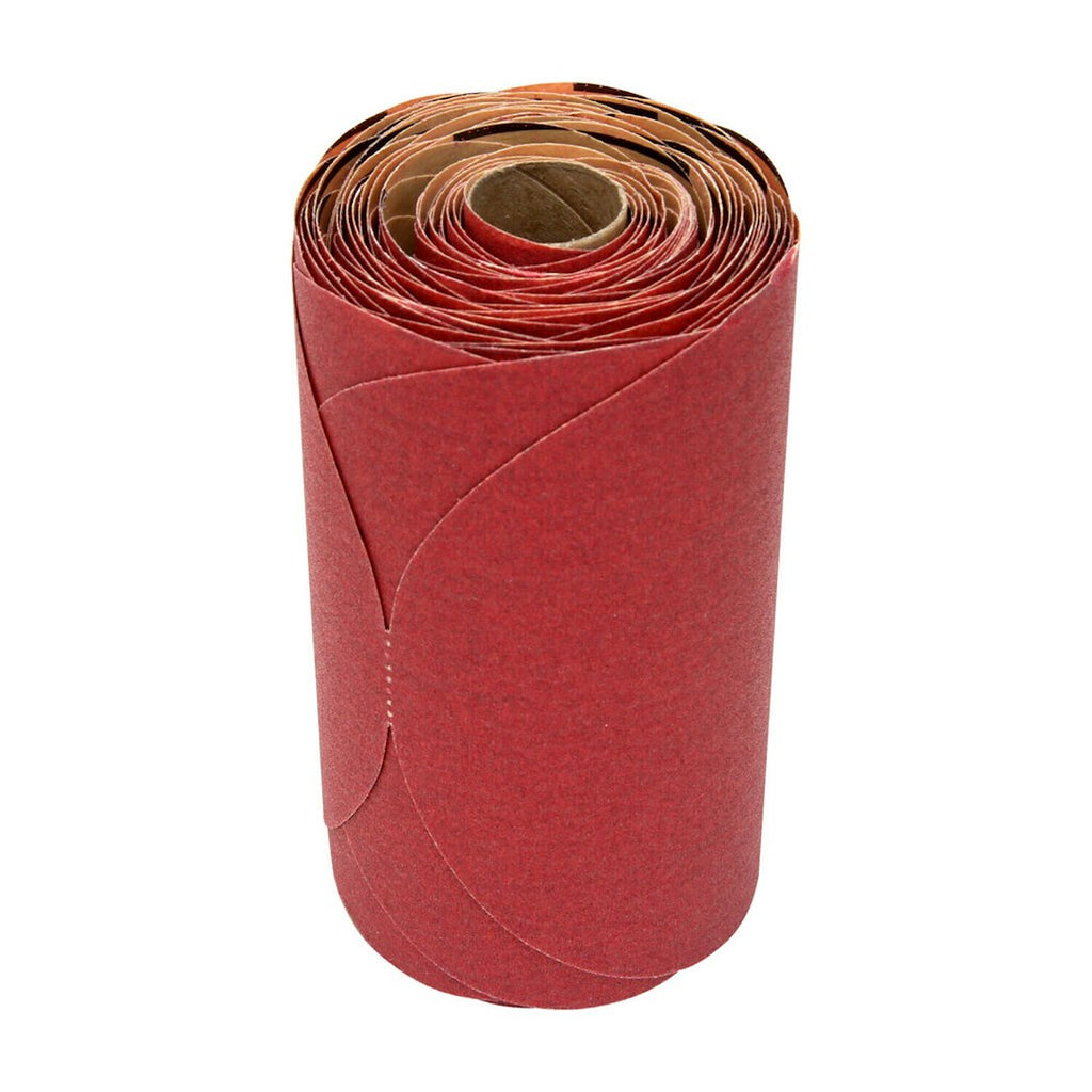 Used For Fine Feather Edge/ Featheredging; Red; Aluminum Oxide; 6 Inch Diameter; A Weight Paper Backing; P150 Grit; PSA Attachment; Hand/ Machine Sanding Method; Dry; 100 Discs Per Roll