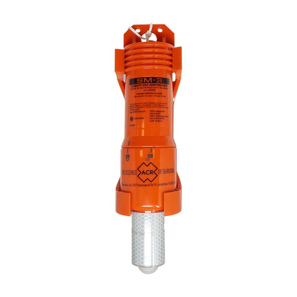 ACR ELECTRON 3947 Manual Activation; Facilitates Rescue By Automatically Activating Strobe When In The Water; Life Buoy LED Flash Light; 40 Hours Operational Life At 86 Degree Fahrenheit/ 24 Hours Operational Life At 30 Degree Fahrenheit; 2.2 Inch Diameter x 9.9 Inch Length; USCG/ MED/ SOLAS Certified; With Polycarbonate Bracket; Works With 2 AA Lithium Batteries(Sold Separately)