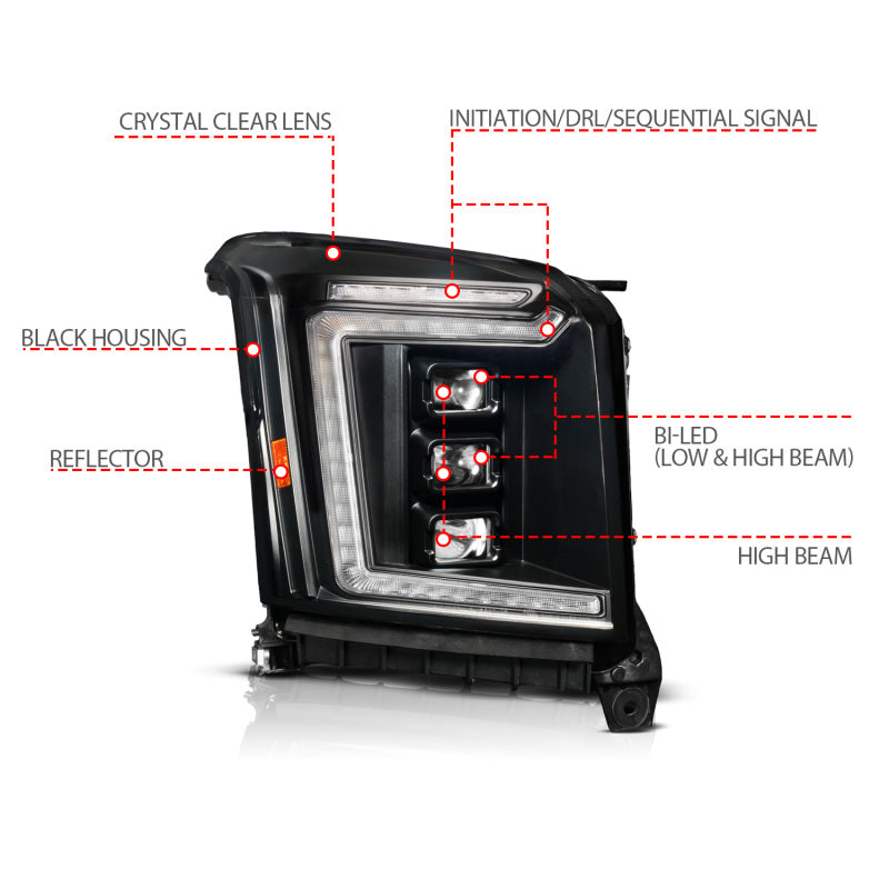 ANZO 15-20 GMC Yukon (Incl XL - Factory Halogen Models) Full LED Proj Headlights Black - Pass. Side