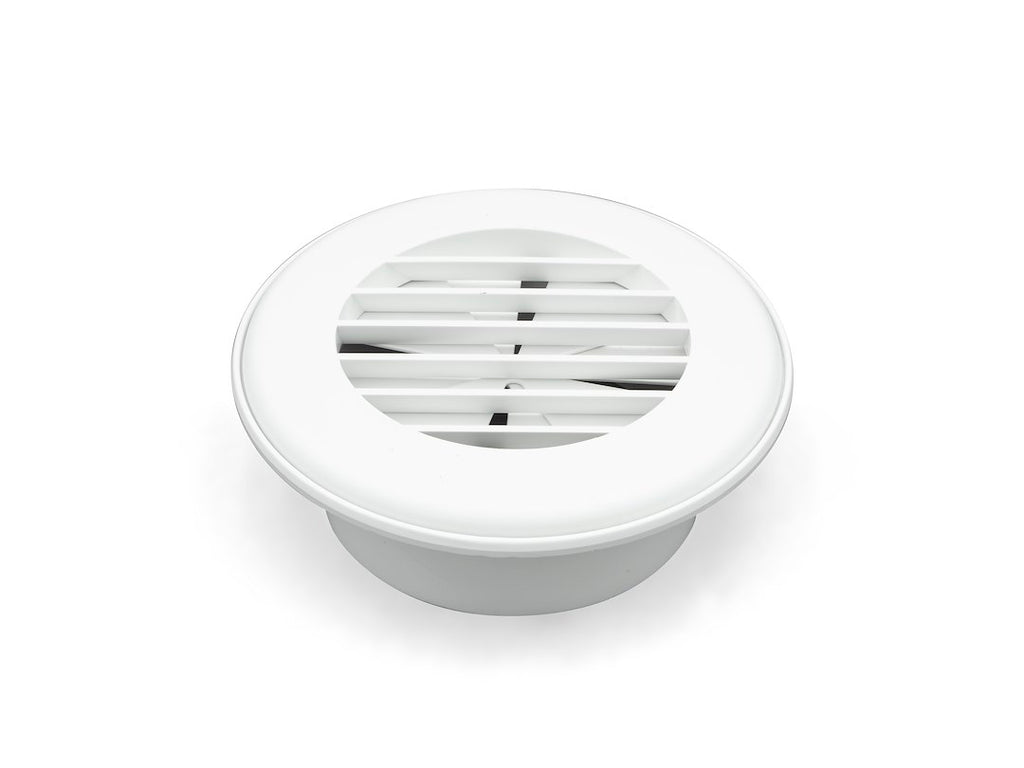 Thermovent Heat Vent; Ceiling Mount; Fits 4 Inch Flexible Ducts; Round; 4-1/8 Inch Diameter Cutout Dimension; 4 Inch Diameter Outside Dimension; 360 Degree Rotation; With Damper; Polar White; With Installation Kit; Single; B&B Cross Reference HV4DPW-A