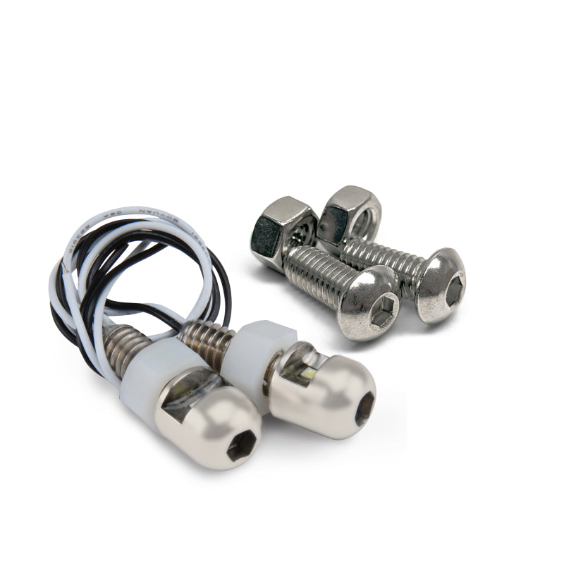 LED License Plate Lighting Kits with their right-angle LED, are extremely efficient and emit a much higher degree of light in a desired location than incandescent lamps. Since there's no filament that can be damaged, LEDs are incredibly durable, virtually shock-proof and vibration-proof. Offer superior lighting & meets legal requirements without compromising great looks Made of high-grade stainless steel with clear waterproof epoxy lens Perfect for license plate relocation projects only using .30MA current, 0.36 wattsInstallation Instructions