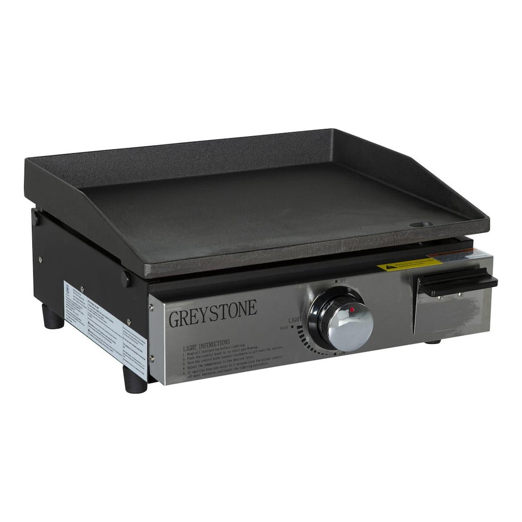 For Outdoor And Indoor Use; 17 Inch Length; Rectangular; Porcelain Flat Top Griddle And Grill; With Drip Tray; Combination Griddle And Grill; 15000 BTU; 250 Square Inch Cooking Area