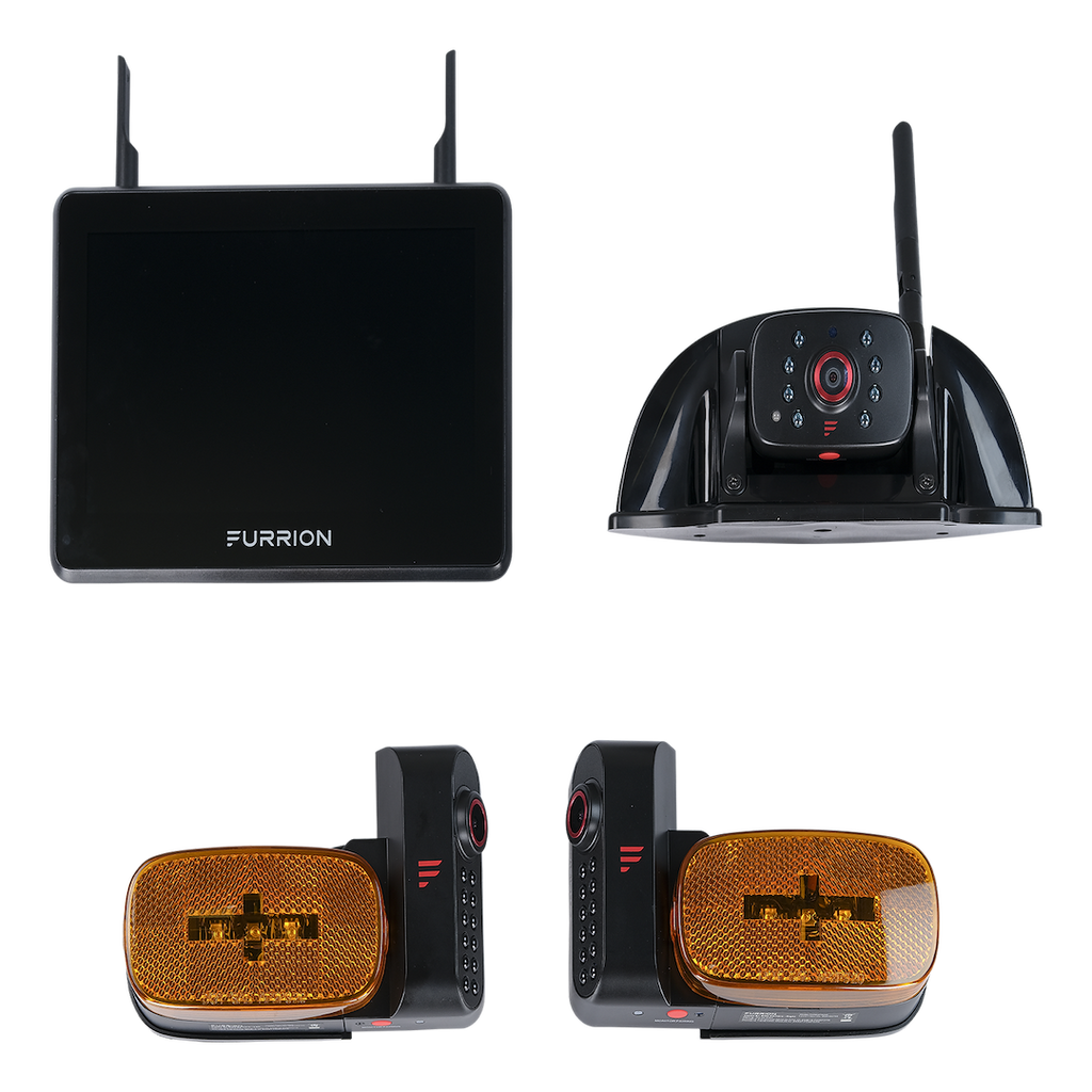 FURRION FOS7HTASF Digital Wireless Observation/ Back Up System; Camera Mounts To Doorway For Security Or On The Rear Horizontal Center Of The Vehicle/ Monitor Mounts On Interior Windshield; Digital Wireless With Up To 500 Foot Range; Adjustable Camera Angle; 7 Inch LCD Display (Displays Up To 4 Cameras); 1024 x 600 Resolution; With Infrared Night Vision; IP65 Waterproof; Black; With Monitor Table Stand And Windshield Mount; 12 Volt