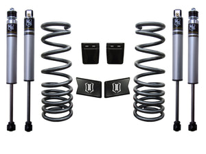 2003-2012 Ram 2500/3500 2.5 Inch Stage 1 Suspension System is ICON's entry level system. This system not only levels out the stance, it increases ride quality and performance both on and off road. The Stage 1 System is comprised of dual rate coil springs, polyurethane bumpstops, sway bar drop brackets, and ICON 2.0 Aluminum Series internal reservoir shocks. This entry level system is great for towing, rough construction site terrains, and country dirt roads all while keeping a smooth highway feel. With the endless hours ICON has spent testing and tuning our suspension components and shocks as a complete package, you can rest assured you have the best suspension solution on the market.
