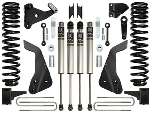 ICON Vehicle Dynamics is an industry leader when it comes to Ford Super Duty performance. Our engineers have spent countless hours under these trucks and behind the wheel developing some of the most refined suspension systems available. Increasing wheel travel and ride comfort is standard operating procedure at ICON, but our engineers aimed high to produce a suspension solution that also maintained the Super Duty’s outstanding towing capacity. ICON’s 7” Suspension System for the 08-10 Super Duty yields enough lift to clear 37” tires while providing excellent ride characteristics across a wide variety of terrain on and off-road. Each component of this suspension system has been specifically engineered to work in union with other ICON parts to extract maximum performance out of the vehicle. Our Stage 1 System is comprised of 7” lift dual rate coil springs, fabricated radius arm drop mounts with brushed stainless badges, track bar drop bracket, bump stop extensions, sway bar links, a forged pitman arm, brake line brackets, rear 6" lift blocks with U-bolts, and 2.0 Aluminum Series smooth body front & rear shocks.