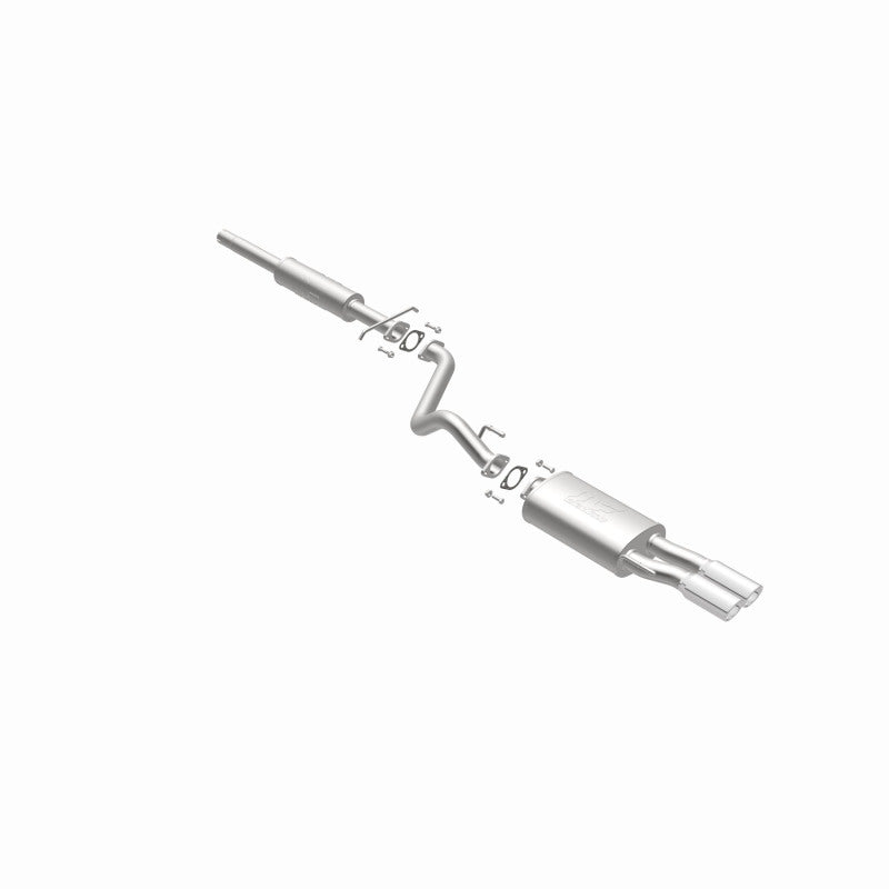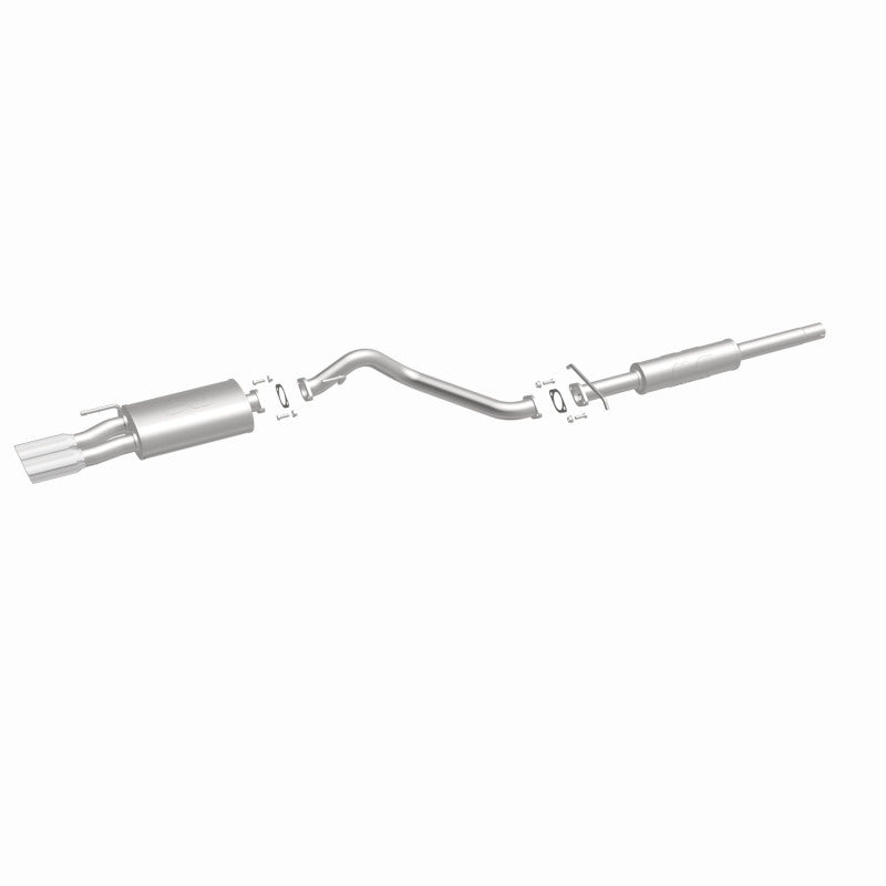 The MagnaFlow 1993-1999 Volkswagen Golf Touring Series Cat-Back Performance Exhaust System 15670 is the perfect partner for your 2.0L, 2.8L 1993-1999 Volkswagen Golf to take on a grand tour or a weekend cruise thanks to the powerful, resonant exhaust note and dyno-proven performance it brings to the table. This durable, corrosion resistant stainless steel exhaust kit is engineered to conquer the miles with ease while enhancing your driving experience with Moderate exterior and Mild interior sound levels generated through its fast-flowing, mandrel bent 2.25in. main piping and 2 Straight-Through muffler that terminate in a Dual Straight Driver Side Rear exit with 3in. Polished Welded-On Single Wall Angle Cut Rolled Edge tips. 15670 features a cat-back layout design to replace your import's stock exhaust components from the catalytic converter on back. This Volkswagen Golf exhaust system is compatible with 1993-1999 engines. The use of extensive 3D scans made during the development process has resulted in an easy-to-install, direct-fit design that fits your Volkswagen Golf like a glove. 15670 is produced using CNC precision robotic manufacturing techniques and is backed by MagnaFlow's limited lifetime construction warranty.
