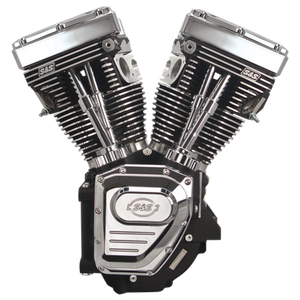 The 124 cubic inch T124 low compression Long Block engine fits 1999-'06 HD big twins except 2006 Dyna models. Long Block engines do not include a fuel or ignition system, so they can be used for either carbureted or EFI applications. If you already have a performance ignition, larger carburetor or a larger throttle body and EFI tuner, they can be used with this engine. The cylinder heads are specially machined to compensate for the longer cylinders so a stock length manifold or throttle body will fit perfectly, and the cylinder head breathers are compatible air cleaners designed for a stock engine. Engine features 4-5/8" stroke X 4-1/8" bore at 10.2:1 compression, S&S 585 gear drive Easy Start cams, S&S TC3 cam plate and oil pump, and black wrinkle powder coat finish that matches stock engine components.