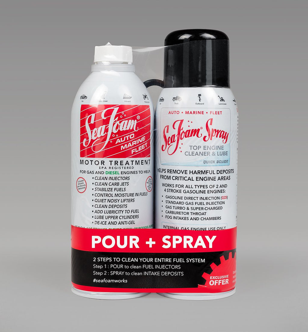 SEAFOAM SF-SS Fuel System Cleaner; For Diesel And Gasoline; Combo Pack Contains One 16 Ounce Bottle Motor Treatment And One 14 Ounce Aerosol Can; Set Of 2; Use To Clean Fuel Injector And Carburetor Passageways/ Cleans Intake Valve And Chamber Deposits