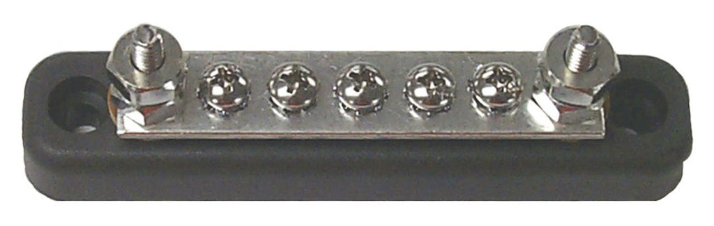 SIERRAMARINE FS46100 Flat Strip; 5 Screw Terminal/ 2 Stud Terminal; 150 Ampere; Without Insulated Cover; 4.13 Inch Length x 3/4 Inch Width x 1.44 Inch Height; Tin Plated Copper Bus