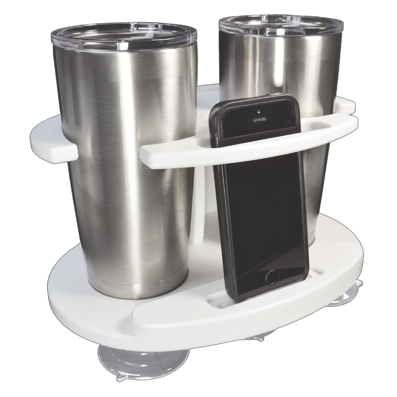 TACO METALS P01-2020W Suction-Cup Mount; Standard; White; Polymer; Non Lighted; Holds Two 16 To 30 Ounce Tumblers; With Mobile Device Cutout And Charging Cable Port