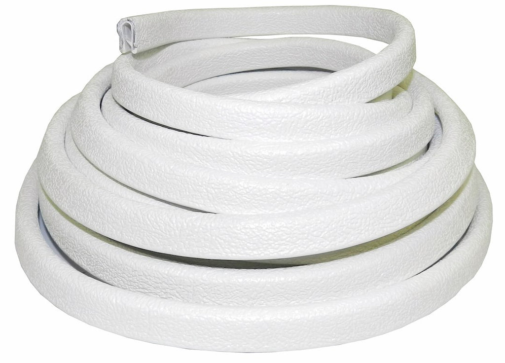 Use To Cover Unfinished Edges; 25 Feet Length; 1/4 Inch Inner Width x 1/2 Inch Outer Height; White; PVC