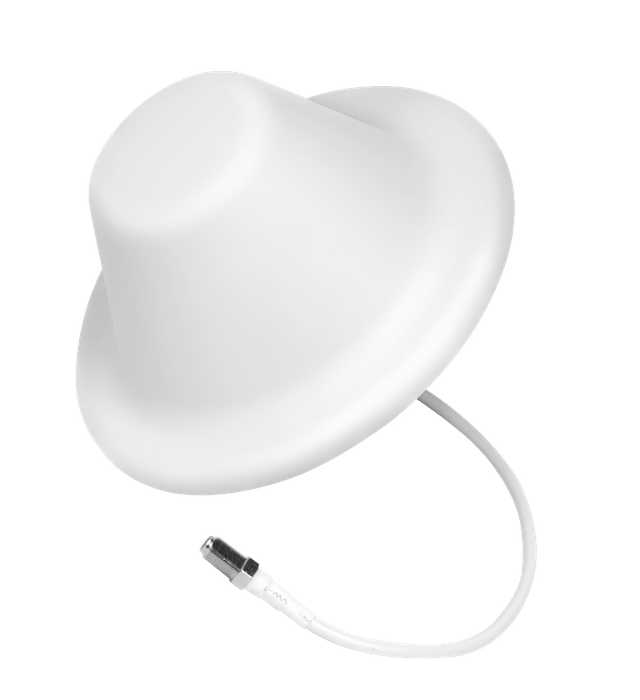 For 4G Building Dome; 7.3 Inch x 3.3 Inch; 70 Ohm Input Impedance; Omni-Directional; White; Ceiling Mount; With F-Female Connector And 12 Inch Pigtail RG6