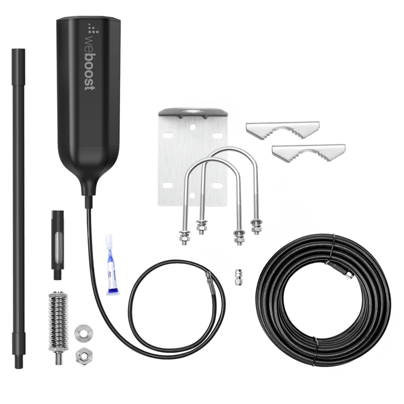 WE BOOST 311230 For All RVs And Motorhomes; Omni-Directional; Black; With 13 Inch Mast Extensions/ L-Bracket Ladder Mount/ Spring Base/ Threadlocker/ Side-Exit Adapter/ 25 Foot RG-6 Cable/ Mounting Hardware/ SMA-To-SMB Male Adapter; US Military 810H/ NEMA IP66 Standards