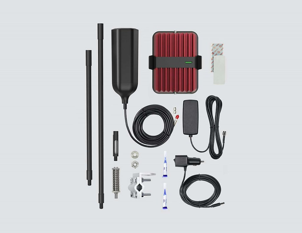 Use To Amplify The Cell Phone Signal In Car/ Truck/ Van And SUV; Works With Cellular Service Provider AT And T/ T-Mobile/ Verizon/ Sprint/ US Cellular; Voice/ Text/ High-Speed Internet; 50 decibels (dB) Maximum Gain; 700 MHz At Band 12 And 17/ 700 MHz At Band 13/ 850 MHz At Band 5/ 1700/2100 MHz At Band 4 And 1900 MHz At Band 25/2; 5 Volt/ 4.5 Amp; 6 Inch Length x 4-1/2 Inch Width x 1-1/2 Inch Height; With 304415 OTR Antenna/ 314419 Slim Low-Profile Antenna/ 850022 Power Supply/ 901104 Mounting Bracket/ Mast Extensions/ Coax Cable Side-Exit Adapter/ Antenna Spring/ Cable Adapter/ Thread Lock Packets