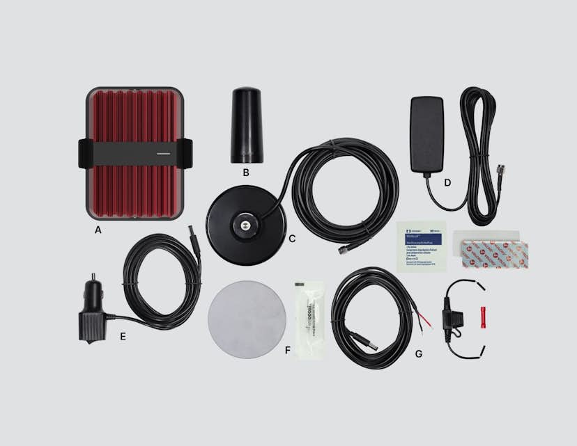 Use To Amplify The Cell Phone Signal In Fleet Vehicle; Works With Cellular Service Provider AT And T/ T-Mobile/ Verizon/ Sprint/ US Cellular; Voice/ Text/ 5G Data; 50 decibels (dB) Maximum Gain; 700 MHz At Band 12/17/13/ 850 MHz At Band 5/ 1700/2100 MHz At Band 4/ 1900 MHz At Band 25/2; 12 Volt/ 1.8 Amps; 6 Inch Length x 4-1/2 Inch Width x 1-1/2 Inch Height; Magnetic Mount; With 314405 NMO Antenna/ 990065 90 Millimeter Adhesive Disk/ 314401 In-Vehicle Antenna/ 950079 Hardwire Power Supply And In-Line Fuse Holder/ 850029 Power Supply
