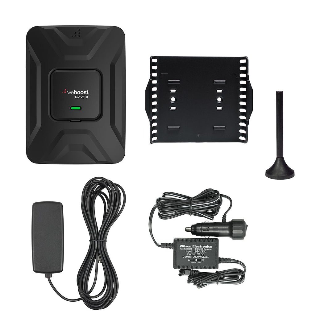 WE BOOST 655021 Use To Amplify The Cell Phone Signal In Car/ Truck/ RV; Voice/ Text/ 4G Data; 50 decibels (dB) Maximum Gain; 700 MHz At Band 12/17/13/ 850 MHz At Band 5/ 1700/2100 MHz At Band 4/ 1900 MHz At Band 2; 6 Volt/ 2.5 Amps; 6-1/4 Inch Length x 4-1/2 Inch Width x 1 Inch Height; With 4G Signal Amplifier/ 4 Inch Magnet Mount Antenna/ Slim Low-Profile Antenna/ Power Supply