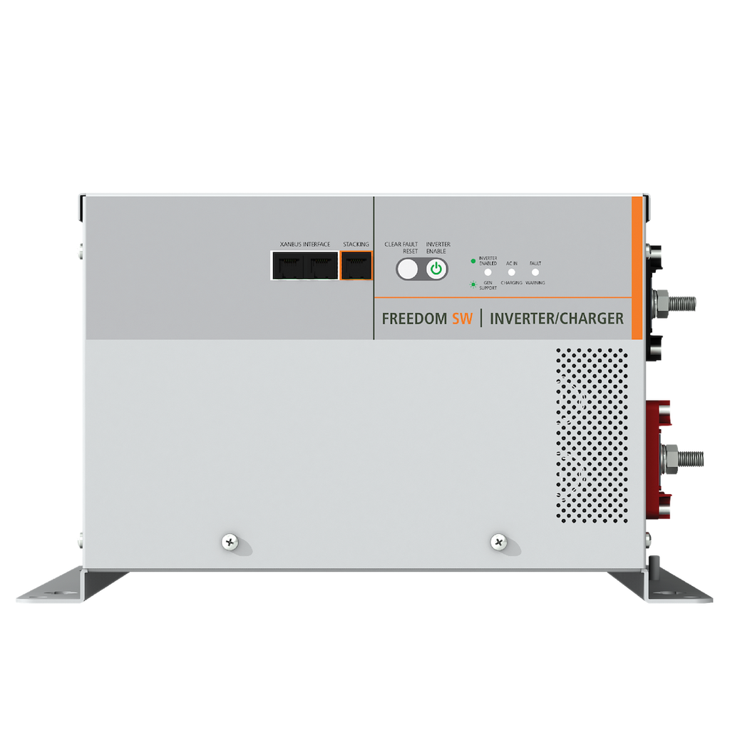 XANTREX LLC 815-3012 Inverts 12 Volt DC To 120 Volt AC; 3000 Watts Output/ 6000 Watts Surge; 80 Ampere Continuous Output; 90 Percent Efficiency; Split Phase Input/ Dual Output Dual Input/ Dual Output; With Battery Over-Voltage And Under-Voltage Protection/ Over-Temperature Shutdown Protection/ Automatic Overload Protection/ Short-Circuit Protection/ Remote Battery Sensor/ Transfer Switch/ Battery Temperature Sensor/ Power Factor Corrected 3-Stage Charger; 7-3/4 Inch Height x 13-1/2 Inch Width x 15-1/4 Inch Length; Pure Sine Wave Output