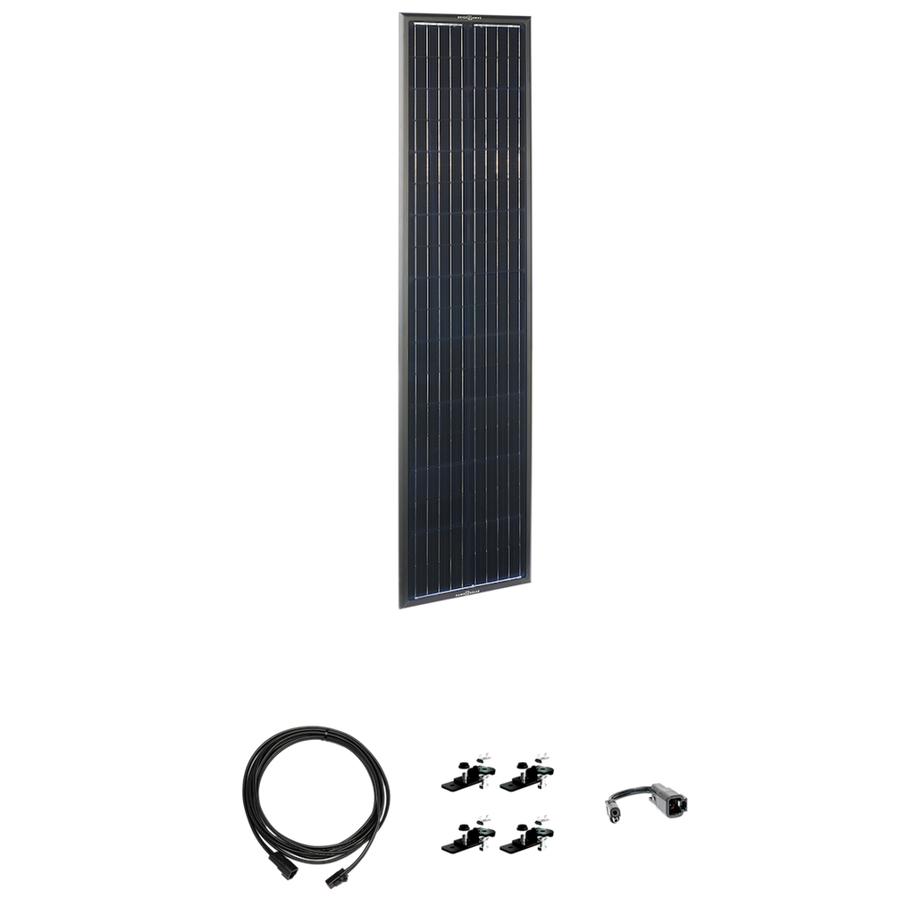 Expansion Solar Kit; 90 Watt; Black Frame And Cells; 59.1 Inch Length x 14.3 Inch Width x 0.67 Inch Depth; Bracket Mount; Without Controller; With Mounting Hardware/ 10 Foot Length ATP To ATP Wiring Extension/ ATP To Zamp Solar SAE Adapter